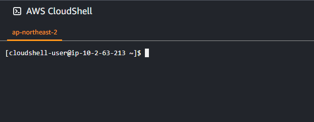 AWS 콘솔에 로그인한 자격증명으로 Shell을 시작한다.