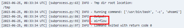 container가 아니라 host에서 whoami를 실행했을 때의 결과를 비교하고자 BashOperator로도 whoami를 실행해 보았다.