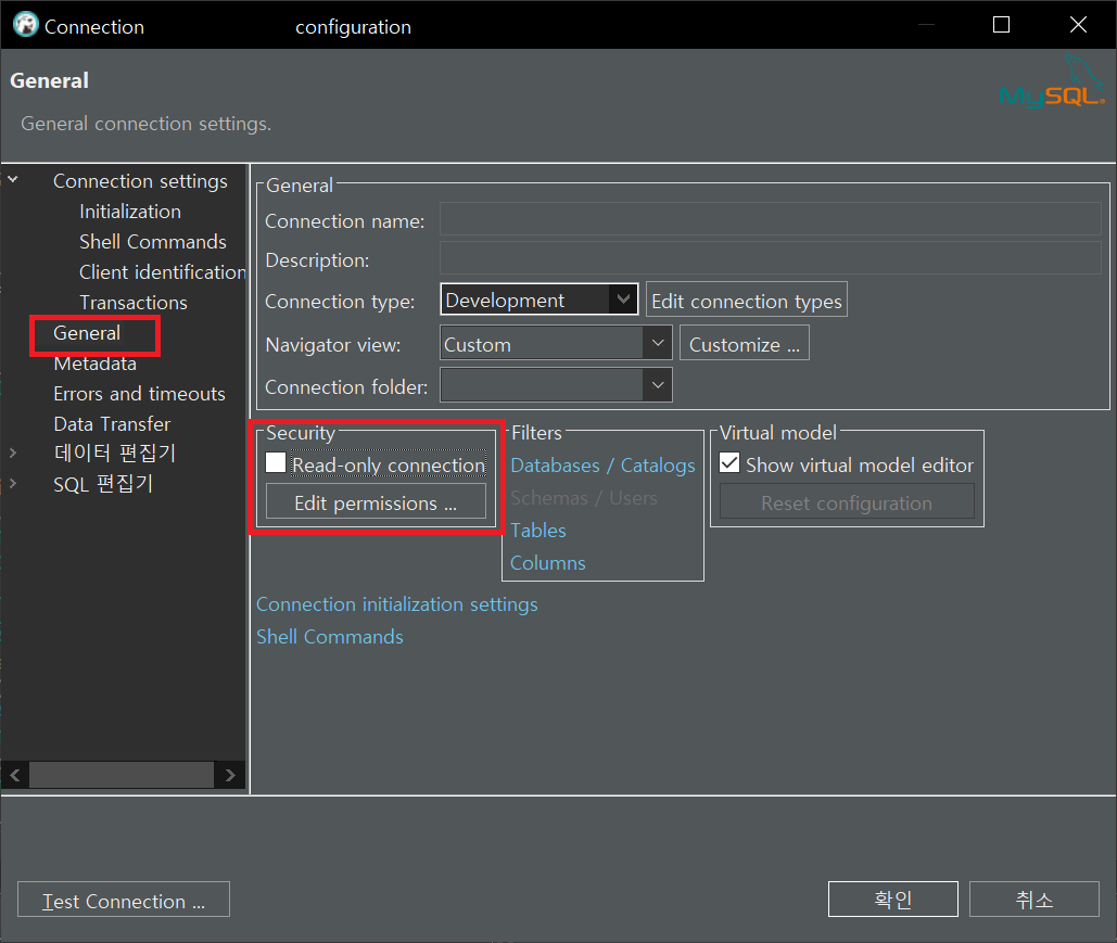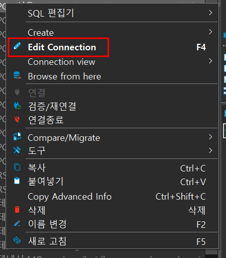 Connection 우클릭 > Edit Connection으로 접근할 수 있다.