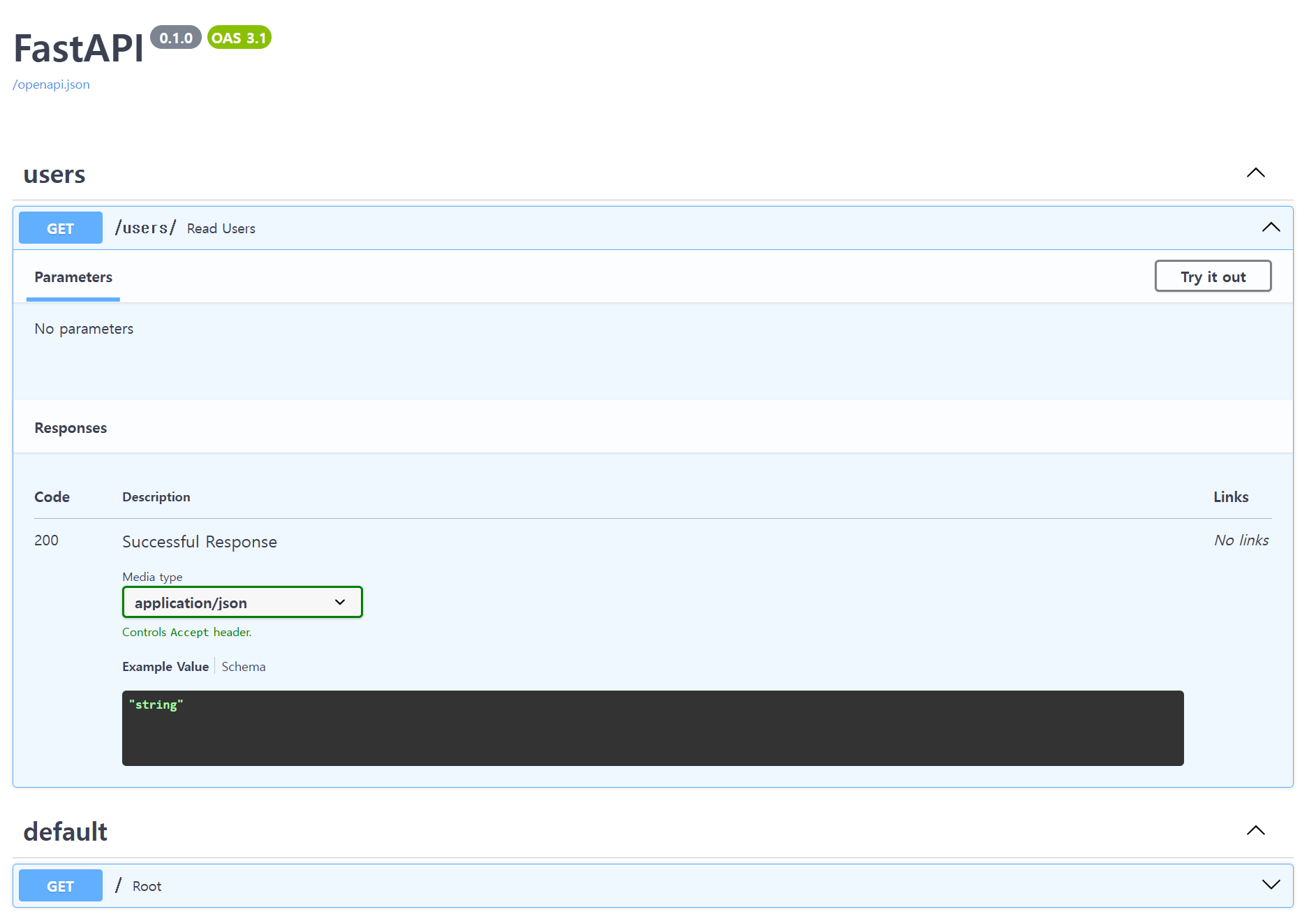이제 FastAPI 애플리케이션을 시작하고 API 문서를 확인해 보면,