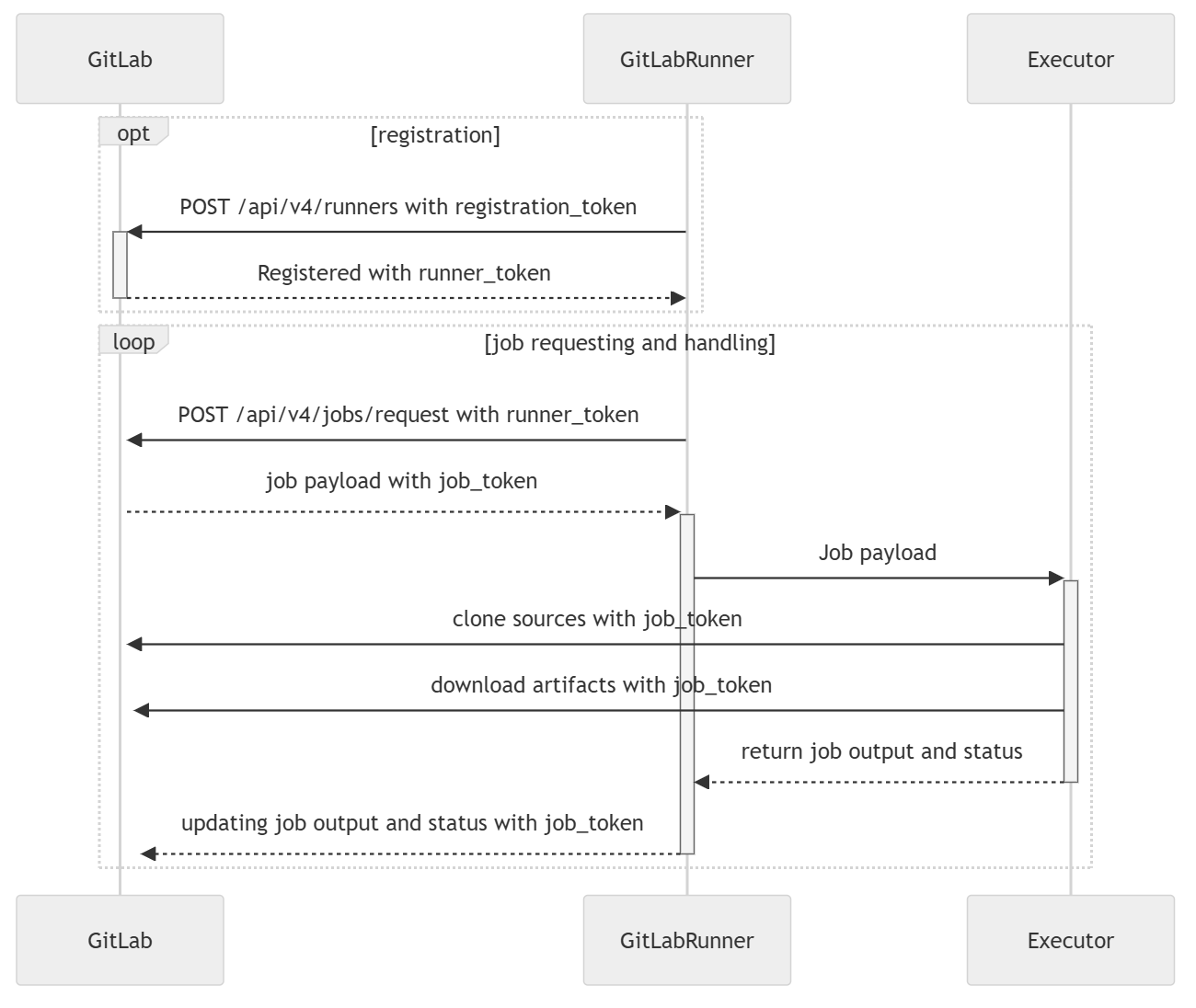 2. 파이프라인이 트리거되면 GitLab은 Runner가 Job을 실행할 수 있게 한다.