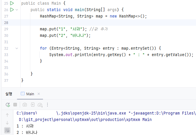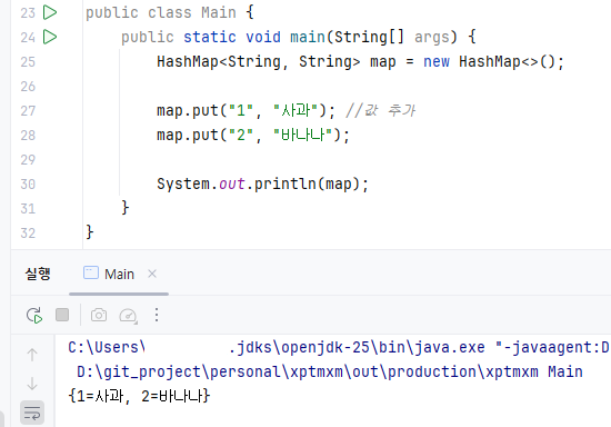 map.put("1", "사과"); //값 추가
