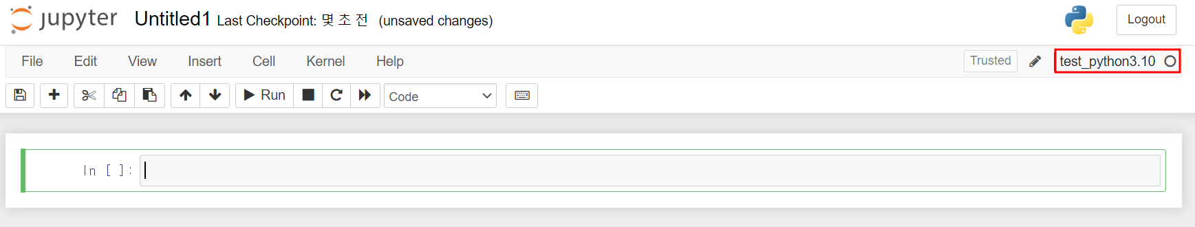 해당 버튼을 클릭하면, 새로 추가한 환경을 사용하는 notebook 파일이 생성된다.