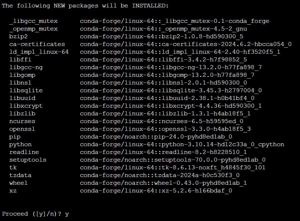 생성 도중 라이브러리 설치 허용 여부를 묻는데, y를 눌러 계속 진행한다. 이상이 없으면 아래와 같이 가상 환경을 확인할 수 있다.