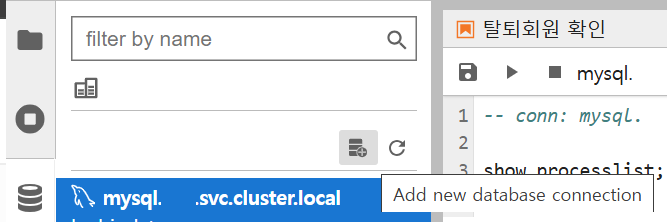설치 후 jupyterlab을 재시작하면 왼쪽 메뉴에 데이터베이스 모양 버튼이 노출된다.