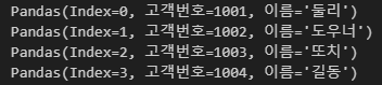 itertuples 함수는 데이터프레임의 행을 namedtuples 형식으로 반환한다.