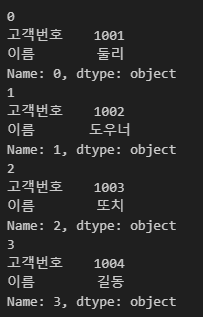 iterrows 함수는 데이터프레임의 행을 인덱스와 시리즈의 튜플 형식으로 반환한다.