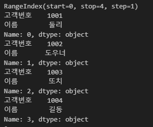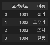 }, columns=['고객번호', '이름'])
