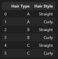 cartesian_product_basic(hair_type, hair_style)