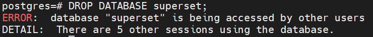 삭제를 수행하는 사용자가 삭제할 데이터베이스를 사용하고 있는 경우도 포함해서, 삭제하려고 하는 데이터베이스에 연결된 세션이 있으면 오류가 발생하면서 실패한다.