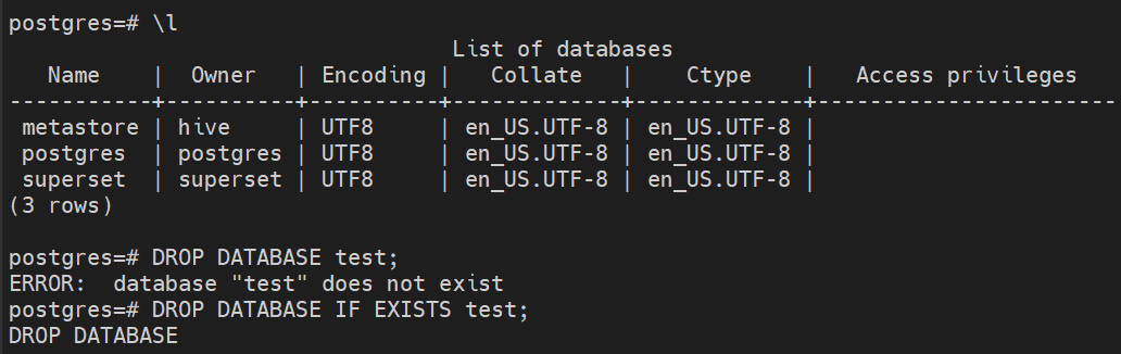 IF EXESTS를 사용하면 삭제할 데이터베이스가 존재하지 않아서 발생하는 오류를 방지할 수 있다.