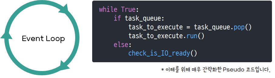 아래는 이벤트 루프가 실행되는 흐름을 간략하게 표현한 것이다.