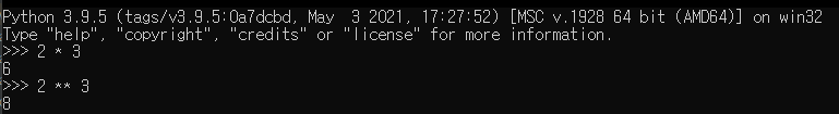 Python에서 Asterisk는 곱셈 연산을 할 때 사용할 수 있다. 또 Asterisk를 연달아 사용해(**) 거듭제곱 연산을 할 수 있기도 하다.