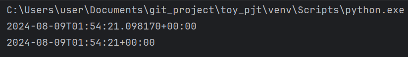 - microsecond가 0이 아닌 경우 : YYYY-MM-DDTHH:MM:SS.ffffff+HH:MM