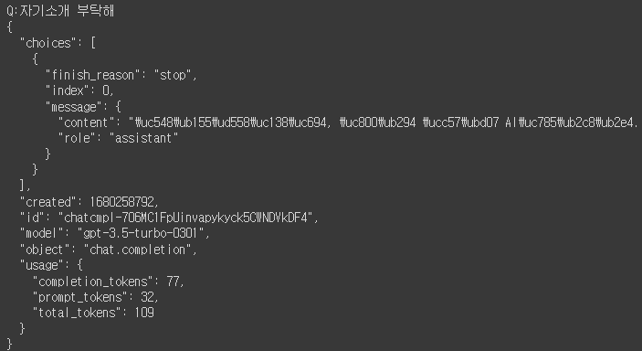 openai의 응답 자체를 print로 단순히 출력하면 아래와 같다.