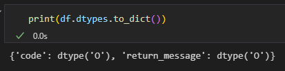 print(f'to_dict : {df.dtypes.to_dict()}')