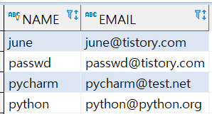 ('june', 'june@tistory.com'),