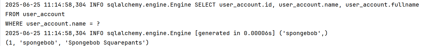 stmt = select(user_table.c.fullname).where(user_table.c.name == "spongebob")