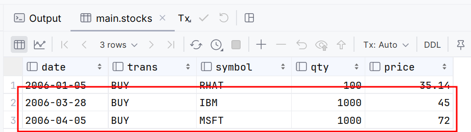 ('2006-04-05', 'BUY', 'MSFT', 1000, 72.00),