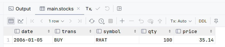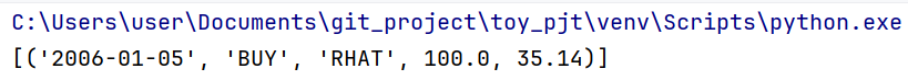 sql = "INSERT INTO stocks VALUES ('2006-01-05','BUY','RHAT',100,35.14)"