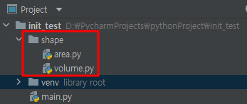 __init__.py에 의해 shape 패키지가 정상적으로 인식된다면 패키지 밖의 main.py에서 아래와 같은 코드로 모듈을 import하여 사용할 수 있다.