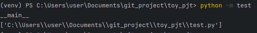 python 코드를 실행 시 -m 옵션의 여부에 따라 동작이 달라지는지 비교해보기 위해 아래의 python 코드를 실행해본다.