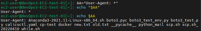 $ AA="User-Agent: *" # 변수 AA 값으로 glob 문자 '*' 가 사용됨