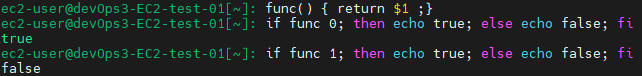 # 'func 1' 은 종료 상태 값으로 1 을 리턴하므로 거짓