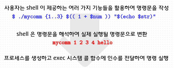 사용자는 명령어 작성 시 사용할 수 있는 기능을 사용하여 명령을 작성하기 때문에, 실제 실행 전에 shell에 의해 해석 단계를 거친다.