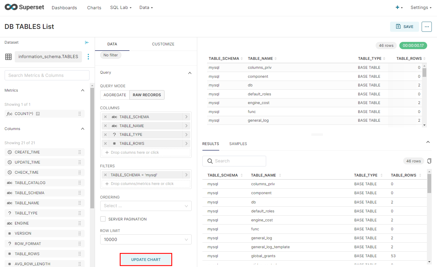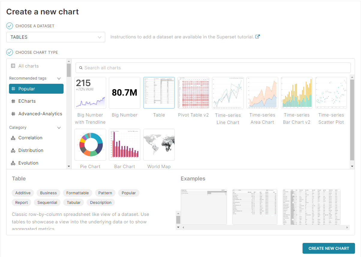 2023.02.23 - [Superset] 데이터 확인 및 쿼리 실행 에서 조회했던 SQL에 대한 테이블 차트를 생성해보려고 한다.