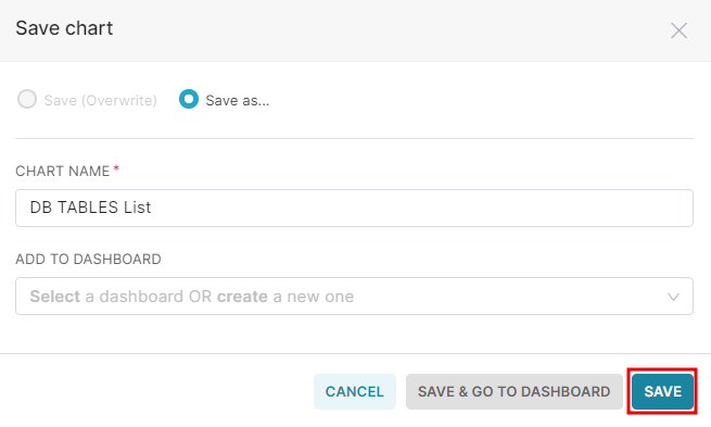 오른쪽 상단의 SAVE 버튼을 클릭해 설정한 Chart를 저장한다.