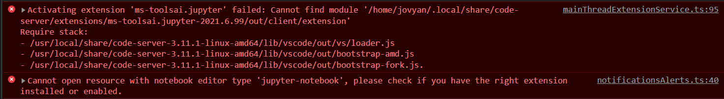 | code-server | vscode | ms-python.python | ms-toolsai.jupyter |