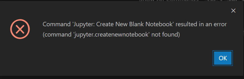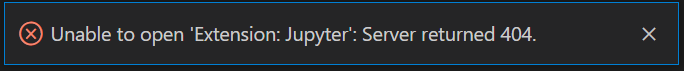 다만, code-server에서 기본 마켓플레이스(open-vsx)를 이용해 python, jupyter extension을 설치하여 사용하려고 하면 아래와 같은 메세지와 함께 .ipynb 파일이 생성되지 않는 현상을 확인했다.